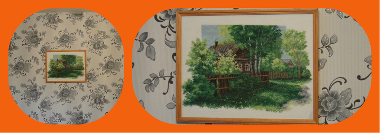 Поэтому я все-таки считаю своей первой вышитой работой домик, утопающий в зелени. Половину я осилила довольно шустро за 3-4 месяца, а вот вторую половину я осилила еще быстрее, мне не дадут соврать девочки из совместника)))