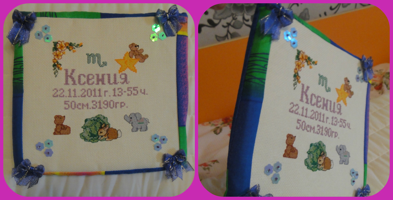 И последняя вышитая работа на сегодняшний день это оформленная метрика для дочери.