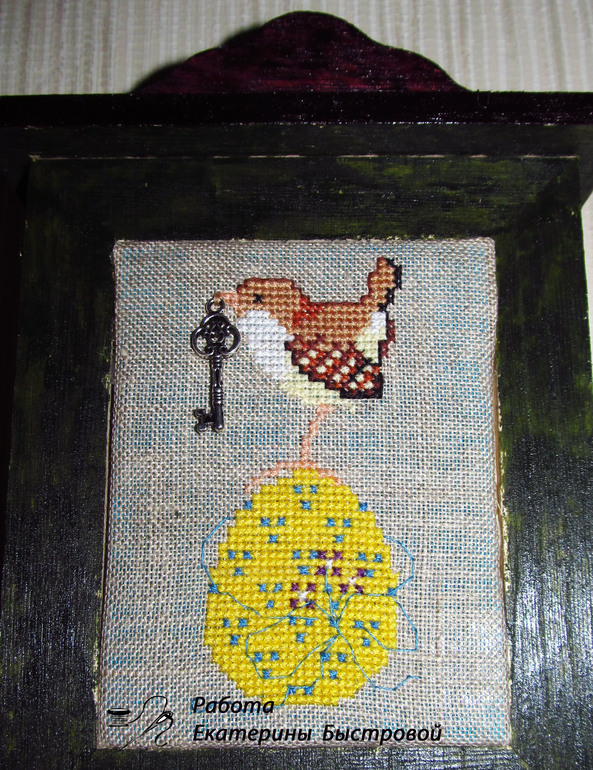 Добрый день! Хочу показать одну из своих новых работ в прикладной вышивке. Это ключница. Решила наконец организовать свои ключи, которые вечно путались непонятно где. Купила деревянную заготовку, покрыла лаком, вышила на льне птичку и готово. Птичка держит в клюве шармик-ключик.