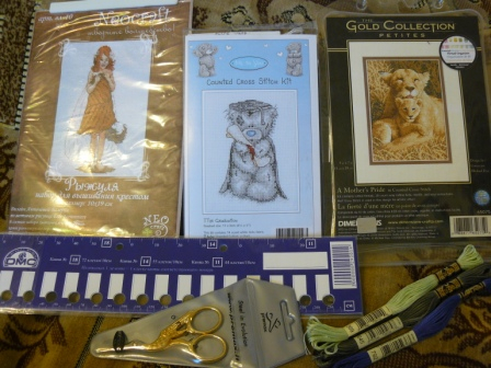 3. Открытый и чуточку начатый набор с мишкой Тедди (буквально 10 крестиков, можно распороть и начать заново самой)