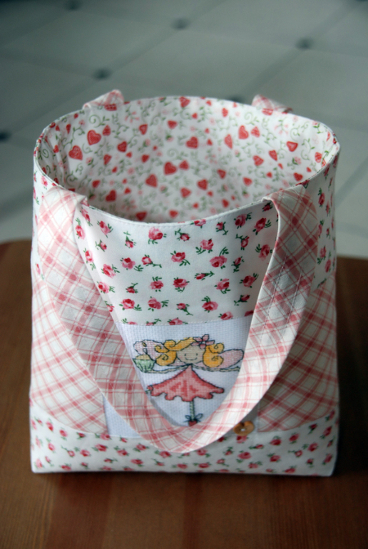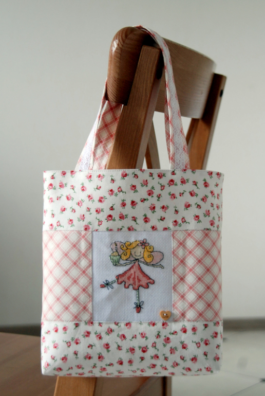 Такая сумочка девичья, уютная, милая и феечка задорная. Ткань использовали красивую, мне очень нравится в мелкий цветочек.