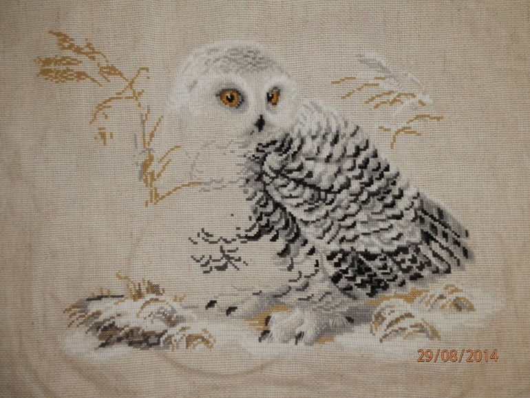 Вышивальные процессыУвидела эту сову, сразу влюбилась в нее, нашла схему, хотела сама нитки подбирать, но потом в магазине наткнулась на набор и решила не мучиться с подбором (к тому же в наборе шерсть, а это надо было в гамму переводить как-то). Вот так еще в апреле (!) у меня появился этот набор. Вышивать начала с глазок, самое любимое) А потом забросила, за лето еще много чего навышивала, и вот опять взялась за сову. Что-то новое начинать нет смысла, т.к. до родов вряд ли успею, а потом снова нескоро вернусь к вышивке, поэтому решила закончить уже начатое)