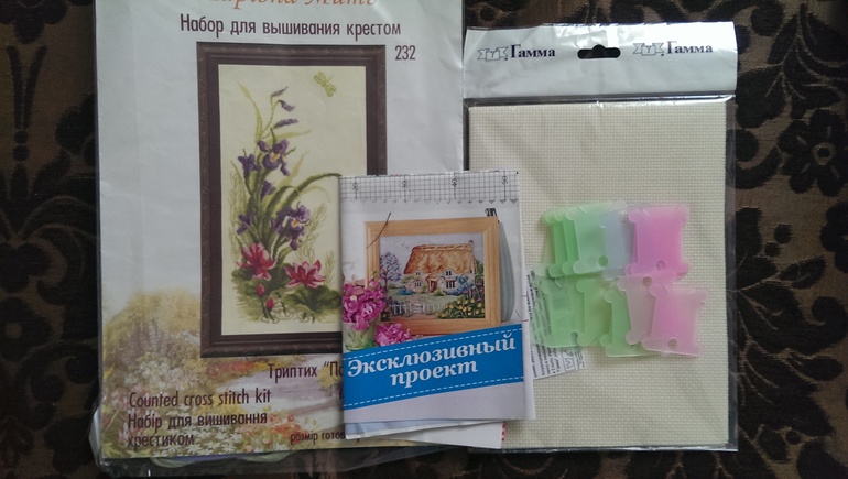 Схема из триптиха Полевые цветы с нитками, эксклюзивный проект из журнала Вышиваю крестиком,канва Гамма, пластиковые бобинки.
