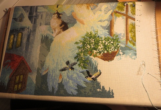 Шила сначала на руках, потом на раме.И еще,немножко изменила схему( у дизайнера Е.Круминой из окна на фею смотрит малыш, мне он показался лишним))) Найди два отличия))) убрала лицо, вышила еще одну птичку,показалось так гармоничнее.Немного "притемнила" волосы ,так мне захотелось...В общем "мое прочтение",да простит меня автор!