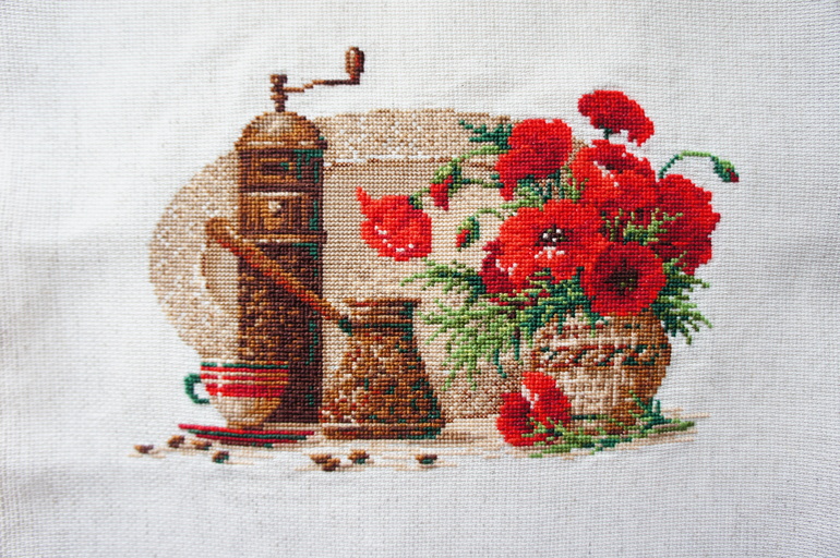 2. "Кофе" от Риолис. Результат даже превзошел ожидания - картинка получилась ярче, чем фото из интернета))) С шерстью работать понравилось.