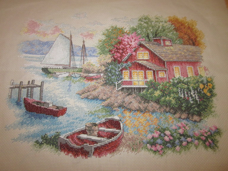 Вышивка крестомда, я это сделала, одну работу закончила ( и даже уже поощрила себя))))
