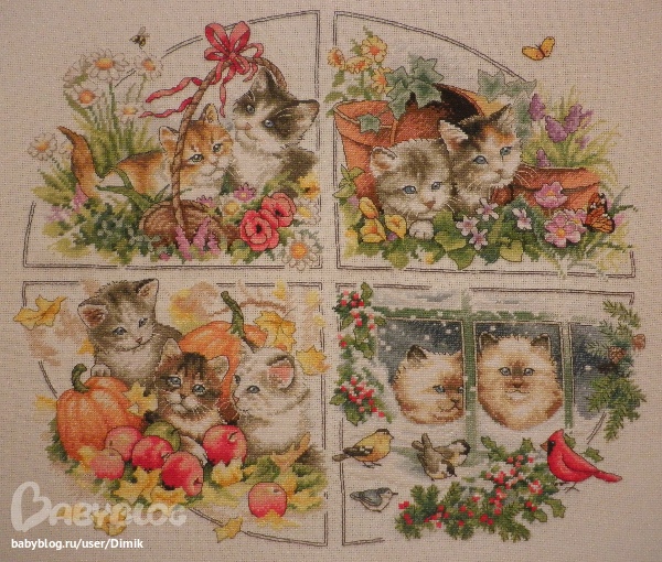 6. Котята.4 сезона.Заканчивала их уже в этом году,но т.к 2/3 было вышито в прошлом,то отношу их к 2012г.