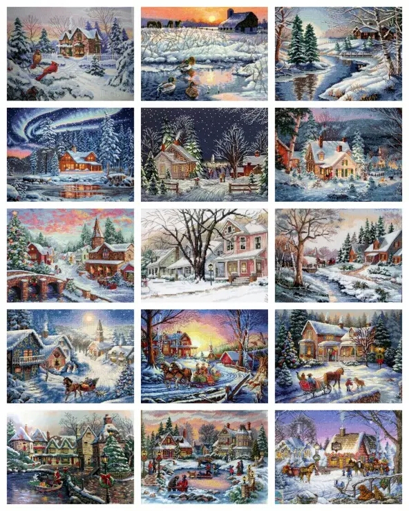 вау вот не люблю почему то новогоднюю тему, ни одного сюжетика не вышила, но один подаренный лежит уже лет 7 когда нибудь я до него доберусь!!! во втором ряду средний...а нравится очень в самом низу слева, там не пойму озеро!?