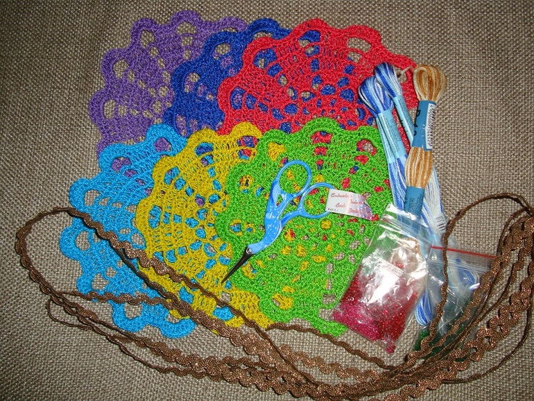Мулине, ножнички, остатки бисера, тесьма зигзаг 3 метра