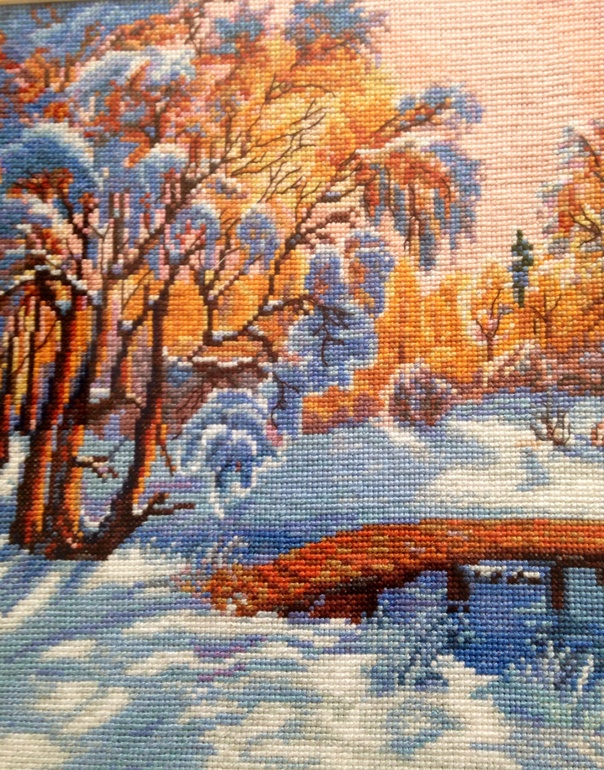 Размер готовой работы 43,5 на 26 см, использовано 44 цвета, всего вышито 35 520 крестиков.