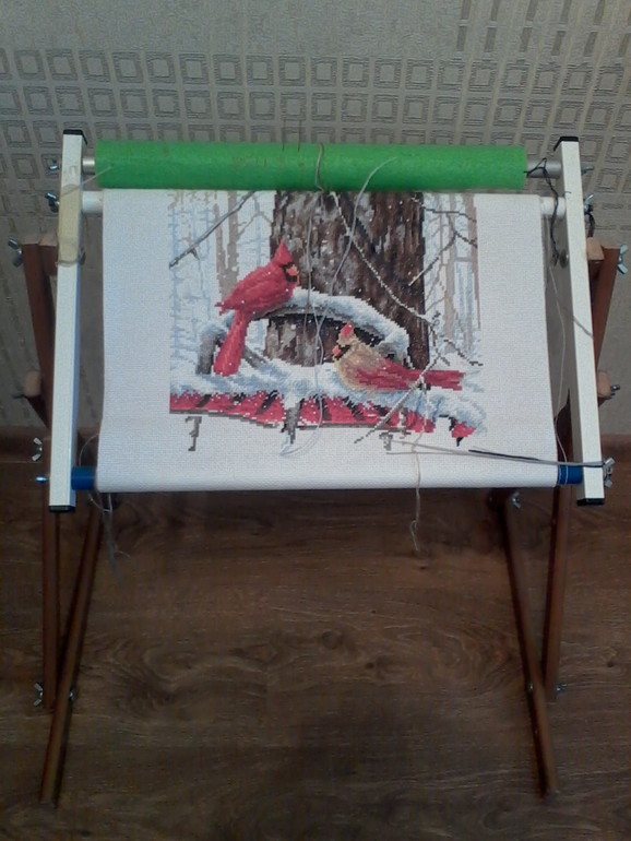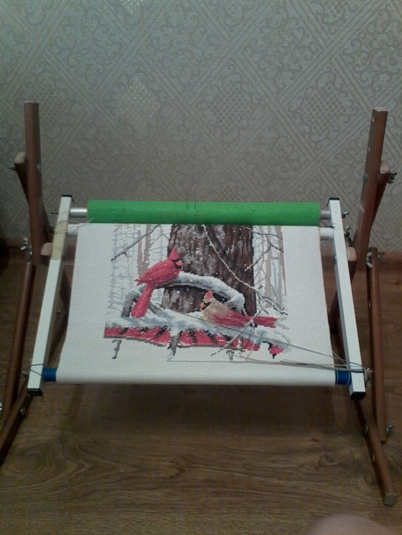 Ну так а чего мелочиться, по максимуму заказала. Вдруг решусь за что-нибудь монументальное взяться. Там еще одна планка есть снимающаяся, она под размер вышивки подгоняется. Мне удобно, когда слева пространство пустое остается.