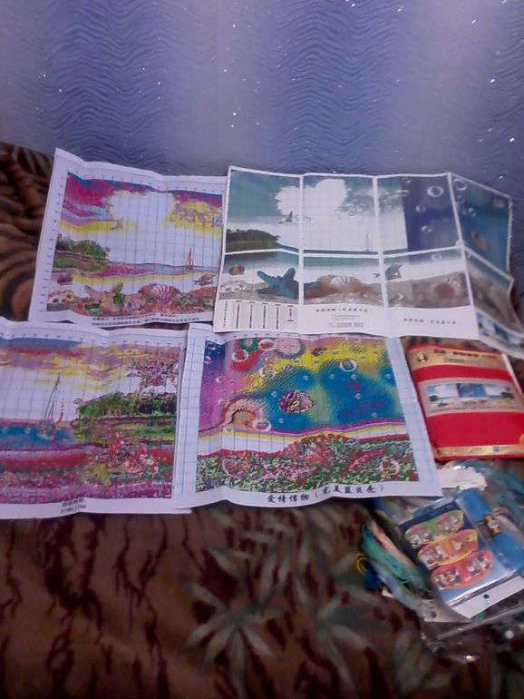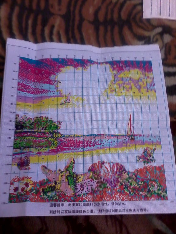 Набор китайский, схема печатная, но яркая, к тому же участки пронумерованы, не надо мучиться, подбирая нитки по цвету и схема нанесена ровно по клеточкам, без косяков!!! (Что очень актуально, т.к. картинка, которую сейчас вышиваю - сплошная "угадайка"). Плюс имеется бумажная схема. Ниточки на органайзере + запасные ниточки в пакетике. И сюрприз от фирмы - маленькая вышивка, десяток "косточек" для намотки ниточек и распарыватель. Канва чуть крупнее, чем наша 14. Нитки ДМС. В общем, надеюсь, в результате получится триптих не хуже, чем на обложке!)))) .Да, забыла сказать! Края канвы обработаны, чтобы не сыпалась! Единственное... вся канва разлинована синим... вот не знаю, это потом как-то смывается? Или придется зашивать фон белым?...