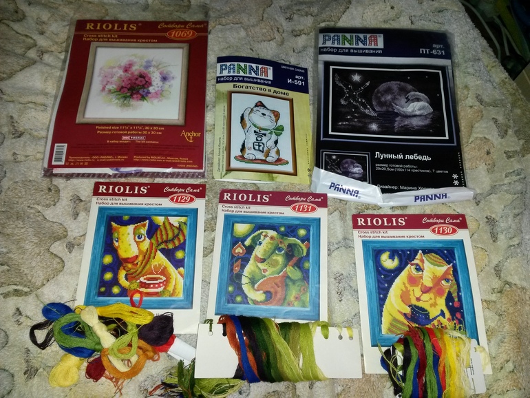 1.Новый, но вскрытый набор Рмолис "Флоксы" (мулине развесила на оргонайзеры, канву разметила нитками) все на месте