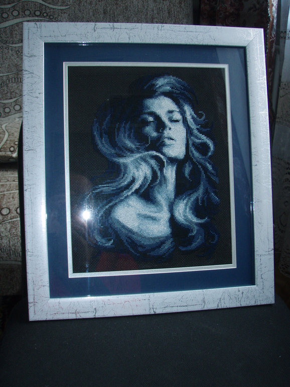 Классная работа! И оформлена здорово!Мне тоже подарили такой набор, вышиваю почти год с огромными перерывами, надеюсь скоро закончу. Она для меня вообще дебют))