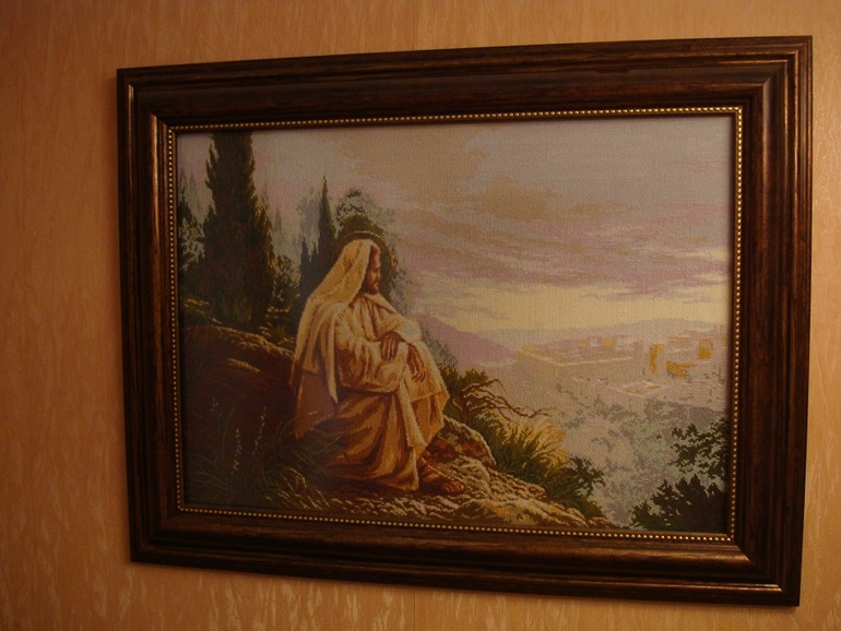 И покажу Иерусалим в оформлении, давно уже висит на стене и радует, но всё никак не доходили руки сфотографировать) Размер получился 63х 48 см.