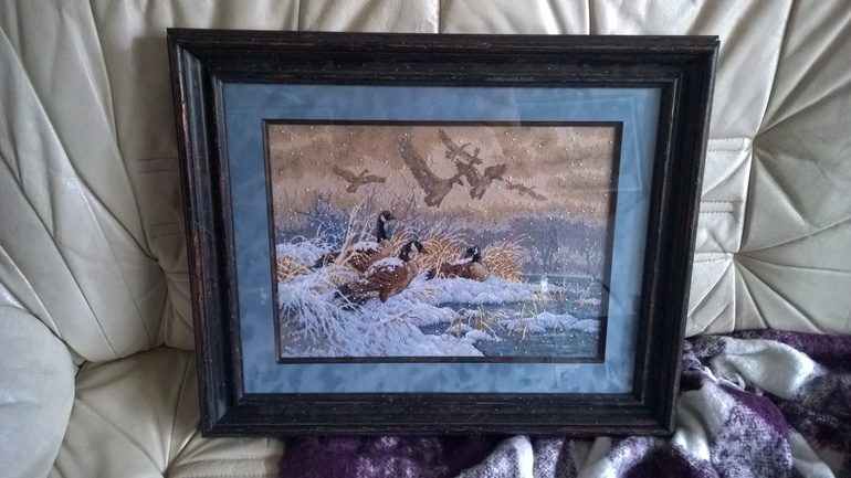 Вышивка крестомВышивала я их очень долго... два года ( Эти улетающие утки очень дороги мне...я тогда забеременела , очень мы ждали ребеночка, но оказалась внематочная беременность, прооперировали на 8 неделе, удалили трубу и сказали что правая в спайках