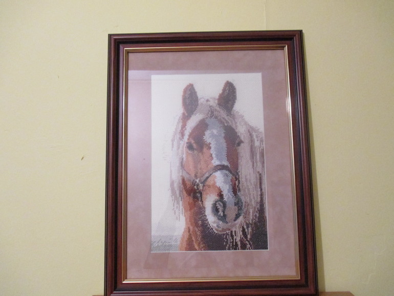 И когда я увидела дизайн этой отшитой Адели-решила!!!Вышью!ВЕДЬ ВЫШИТЬ ЛОШАДЬ-К ХОРОШЕЙ РАБОТЕ!Именно в октябре прошлого года я осознала,что мне срочно нужно что-то менять,а конкретнее-работу!!!Как только я определилась со своими требованиями к будущей работе-на глаза мне попалась эта лошадка)))В отшитом виде-она тронула мне серце своим "живым" взглядом)))Как будто говоря-поверь,решись и всё получится)))И я решилась купить этот набор,хотя не люблю вышивать животных...Но желание, проверить-сработает ли примета, было выше)))Загадав,что когда я её закончу и оформлю-у меня будет новая работа))))Отшив половину работы...у меня всё застопорилось! На протяжении года-редко удавалось посидеть с иголкой...мне так не хватало времени на мои любимые крестики)))И вот в сентябре(спустя почти год!!!)-отнесла я свою лошадку в багетку...Меня почти начала мучать депрессия(работа о которой я мечтала- всё не находилась!!!)Хождения по собеседованиям просто вымотали...Но всё таки... случилось чудо!!!Я пришла на одно из собеседований почти в отчаянии-и нутром почувствовала,МОЁ место!!!И на сл.день мне сообщили.что меня зачислили в штат)))Вот так моя Адель помогла найти работу,которая в будущем надеюсь станет самой любимой))))