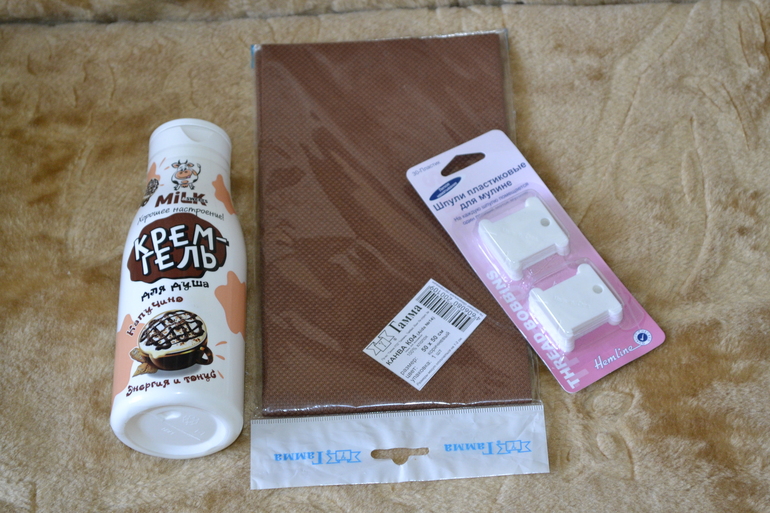 и еще такие вкусняшки-канвушка,бобинки пластиковые и сладенький крем-гель для душа(как сказал мой муж: это тебе кефир прислали?