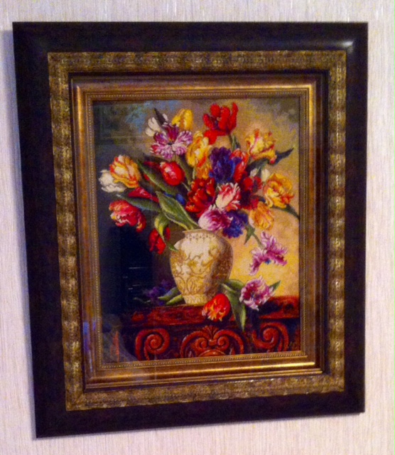 уже наверное всем надоела с одной и той же работой))) забрала сегодня из мастерской.....двойной деревянный багет, стекло между рамами создает дополнительную глубину....вот как=то так..)