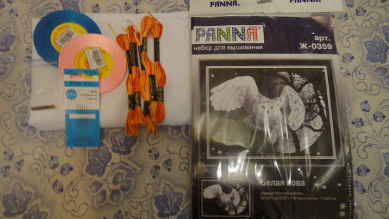 К слову мои покупочки - это ленточки и иголочки, а вот муж купил канвы белой(кремовая есть) кусочек 70*150, ниточки для будущего проекта и набор, а то ж ему 3 процесса незавершенных мало