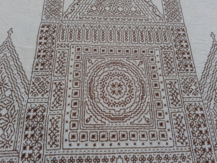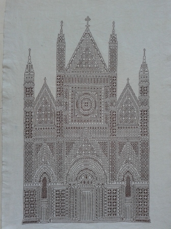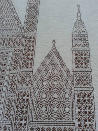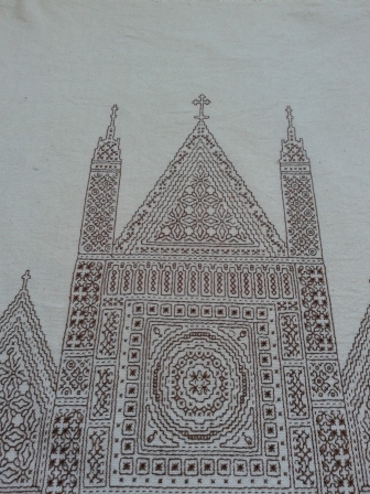 В июне удается мне съездить во Францию, страну моей мечты, стану готических соборов и церквей. (О путешествии я немного писала в дневнике). Находясь там, стала проверять почту и конечно зашла на ББ, а в сообществе как раз объявлялся набор в совместник. Вариантов никаких не было: участвовать и отшивать собор. Решила его шить на двунитке неотбеленной и коричневым цветом. В июле начали делать ремонт и как-то само-собой сложился интерьер в коричневатых тонах, а мебель и межкомнатные двери заказали "слоновая кость". После двух недель бесплодных поисков обоев, которые мне понравились бы сразу и не вызывали сомнений, купили их только вчера, а вечером закончила собор. Ну не чудо ли?!