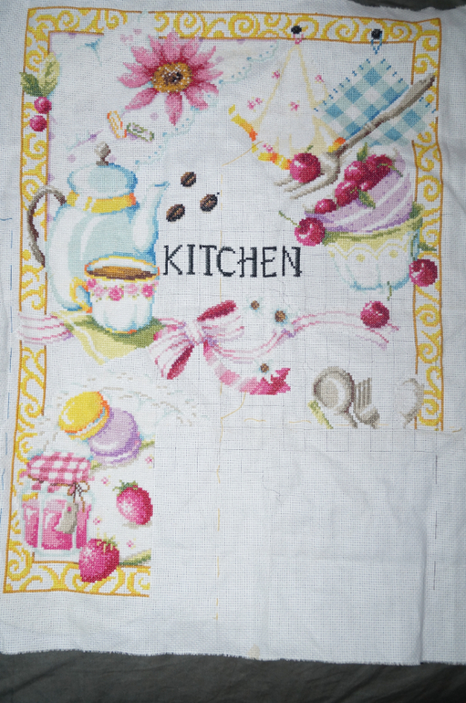 прошу обратить внимание хозяйки, что одиночные крестики около надписи кухня я не вышила поскольку удобнее, на мой взгляд, вышивать с бэком вместе