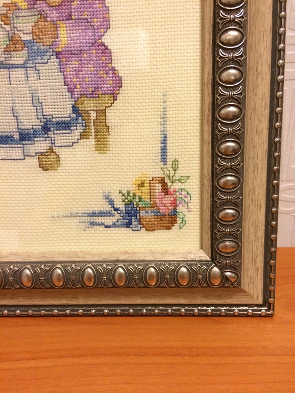На фото кажется, что натяжка слабая, в реале вроде не видно. Оформляла в багетной мастерской. Оформление обошлось в 1300