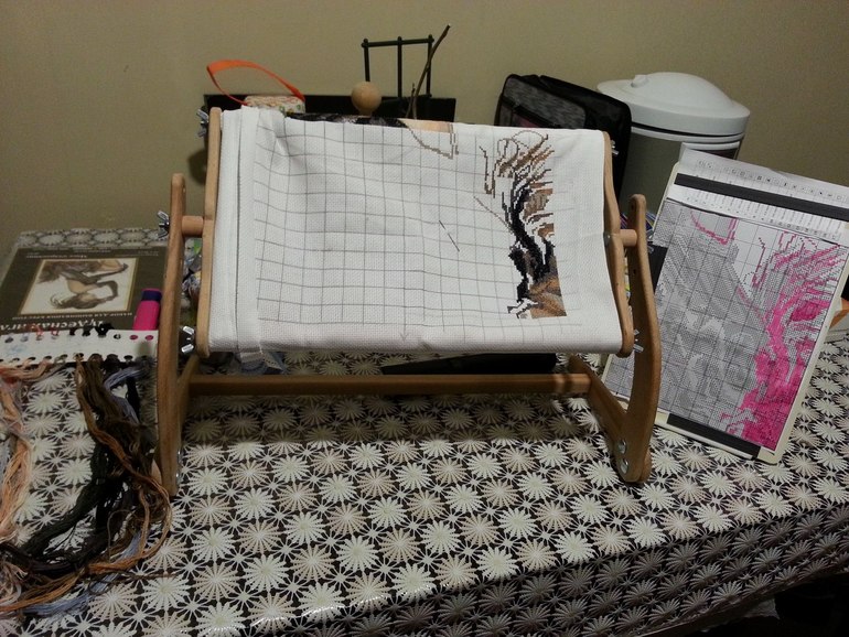 Теперь дело спорится,процесс значительно упрощен...ну и вои мой уголок(пока на кухне,но планирую компьютерный стол обустроить под рукоделия)