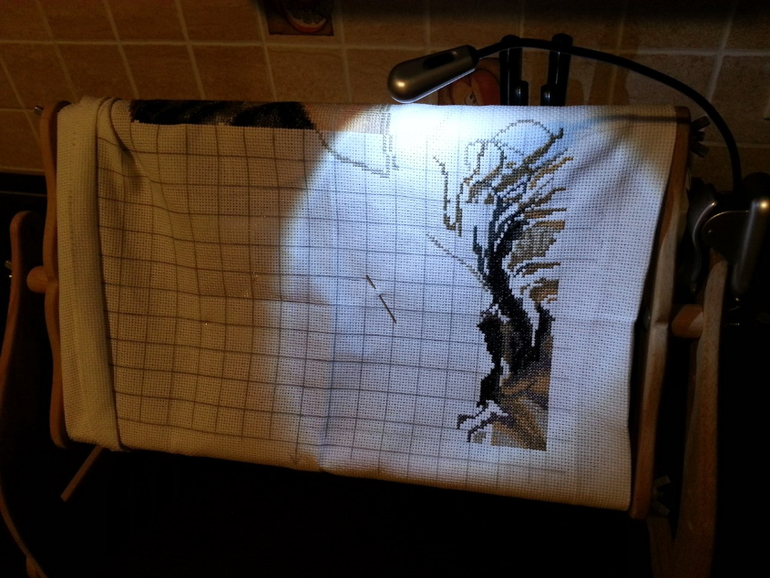 cтолько богатства))) (очень нужные лампа, магнитная доска для схемы и подставочка, органайзер для ниточек и для бисера, черная канва и стопка каталогов-хомяк в истерике!!)