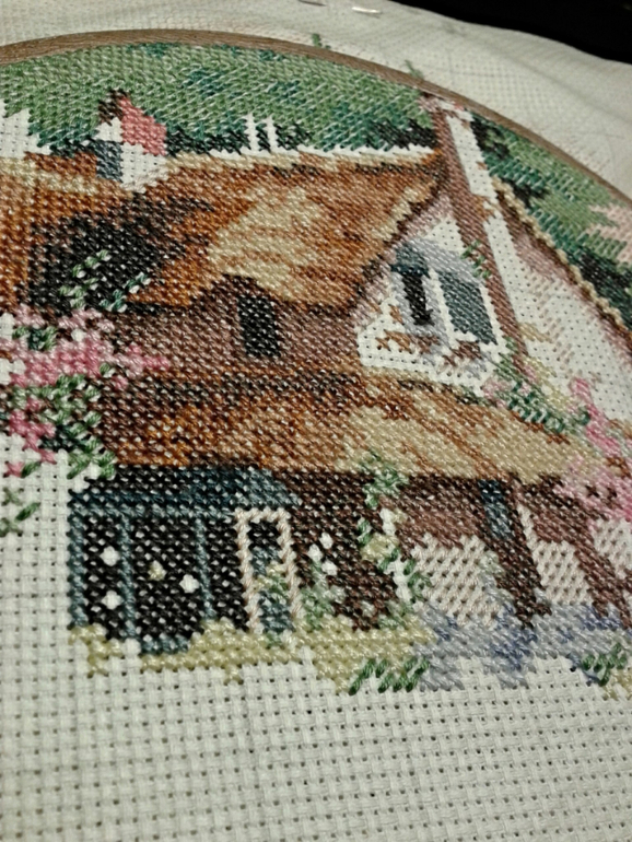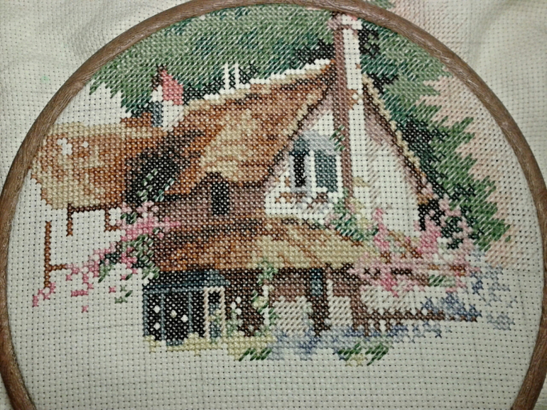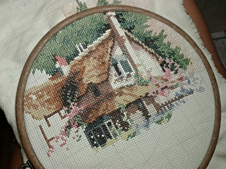 Поэтому и вышивку я начала именно с домика, а не с какого-нибудь левого угла.