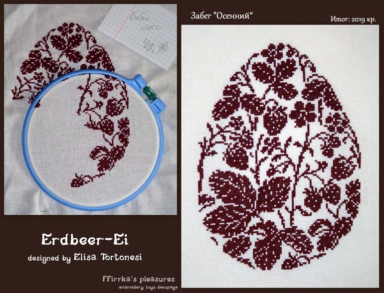 Lea бежала с монохромным земляничным яичком, которое мне очень нравится, и не смотря на все разъезды(которые случились в жизни Lea в этот период) она таки закончила эту чудесную работу.