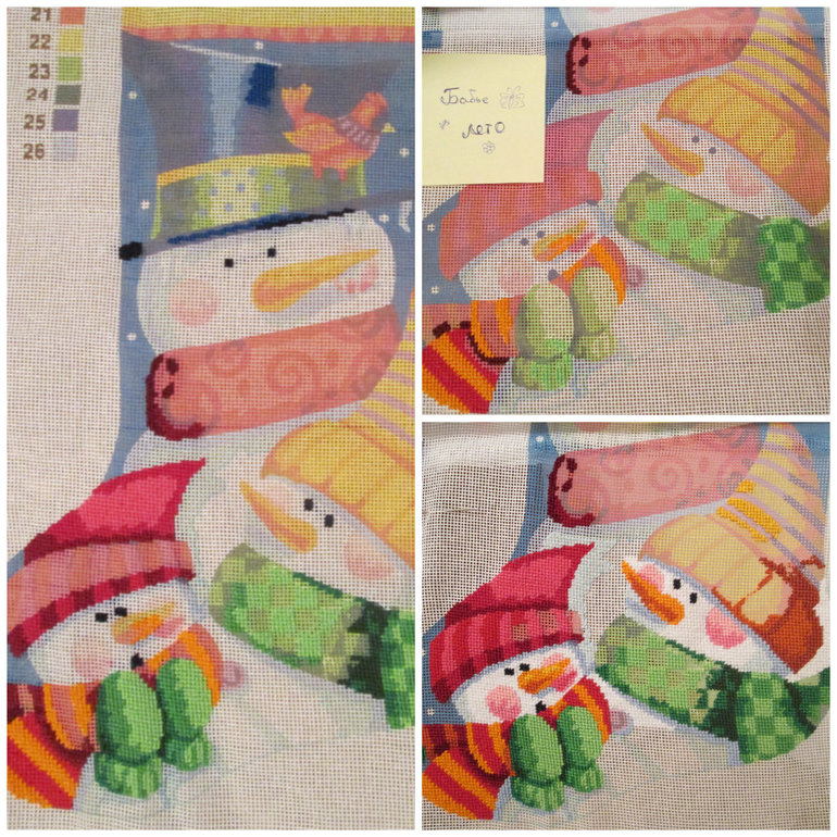 Анна довольно таки неплохо потрудилась над своими сказочно-зимними снеговиками и надеюсь порадует к новому году детишек уже готовым носочком.