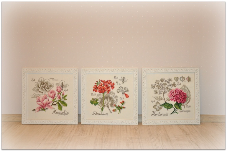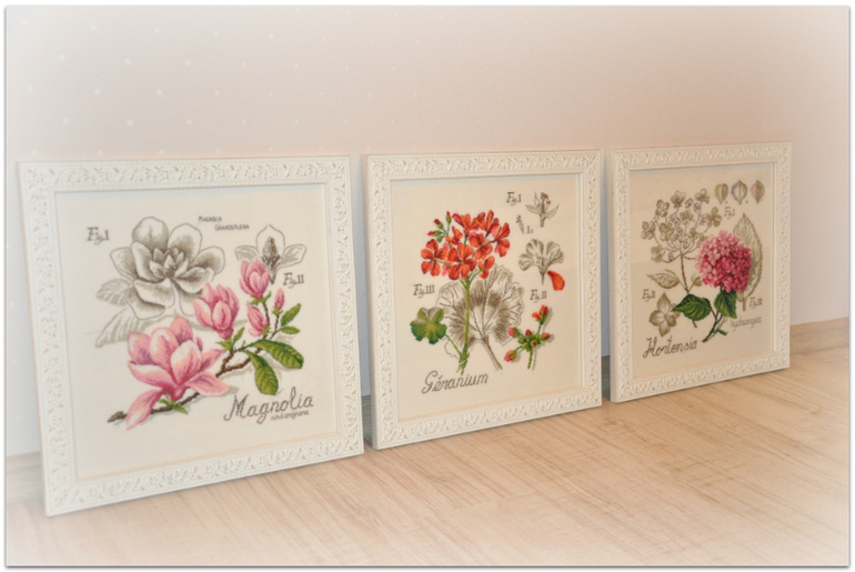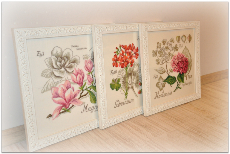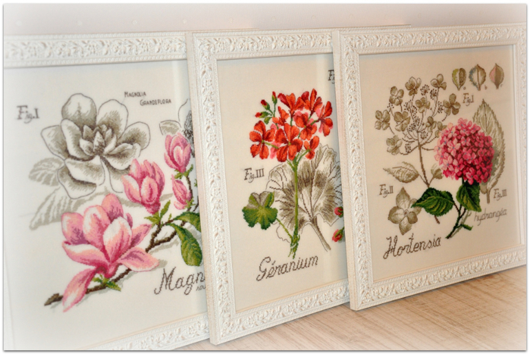 Оформила я наконец свою "ботанику" - герань, гортензию и магнолию от Veronique Enginger.