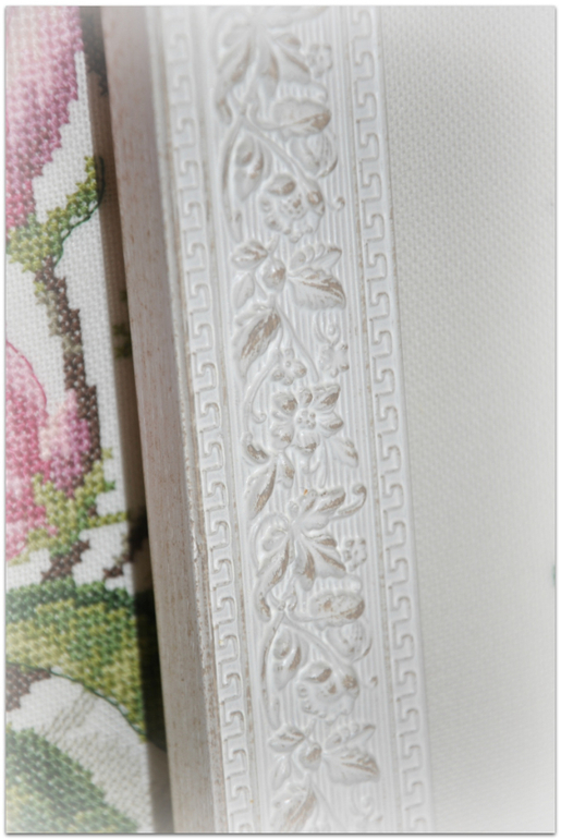 Багет деревянный, оформление 3х работ обошлось в 8 000 руб., не дешево конечно, но не жалею, что выбрала именно деревянный багет, все-таки совсем по другому смотрится, мне нравится, как получилось.
