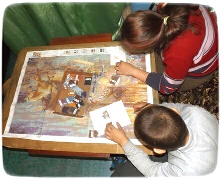 Захотелось как-то отчпокать риолисовских ночных лошадок (китайцы - жулье, конечно, но молодцы)). Купила еще в той, прошлой жизни. Берегла так, как генетики в голодном Сталинграде мешки с сортовыми зернами. Набор даже лежал у меня в тревожной сумке и кочевал по подвалам (блаженная я, дааааа). Вчера достала, развернула, ужаснулась и решила энту красоту от греха подальше...Она ж огроменная, о чем я думала, нездоровая?! Мои воспротивились и клятвенно уверили, что к Новому году отчпокают. Поверила. Летать - так летать! Теперь сидят как две старушонки на скамеечки и лузгают ковыряют. Если успеют за два месяца - одарю златом-серебром и в пупки расцелую, а мне чпокать надоело пока.