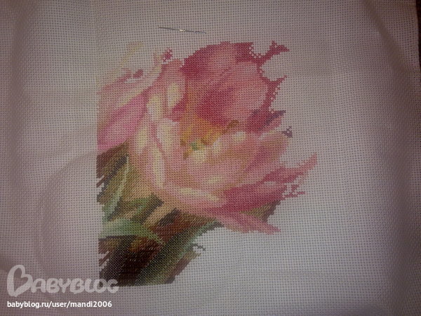 Когда я вышивала Снежного барса от Дим-там много было фона в 6 сложений-было тяжело. Но вот почему то у тюльпанов меня это не напрягает. Может это потому что в основном там в 5 сложений. В 6 сложений не так уж и много участков и они небольшие.