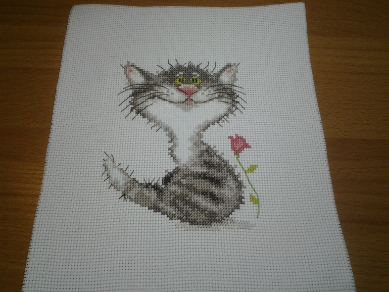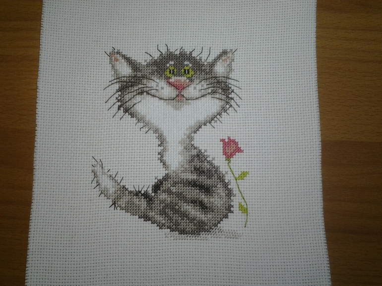 Красивенький котейка! Я вышивала "Слона" Panna, у меня вообще маркер не отстирался, чем только не пробовала! А ещё проблема была в том, что там кремовая канва(или цвета слоновой кости), в какой-то момент тоже думала про доместос. В итоге спас Ваниш, я прям почти весь его вылила на вышивку, полежал несколько часов и всё!