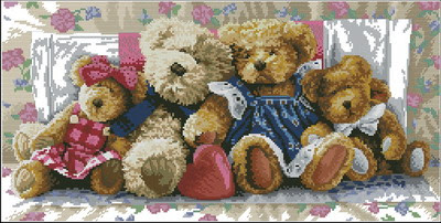 Что-то меня потянуло последнее время на медведей, в спальне над кроватью у нас уже висят мишки))) показывала в своем дневнике. Вышивала тоже "по приметам" на семейное счастье. Работают! Главное верить)))