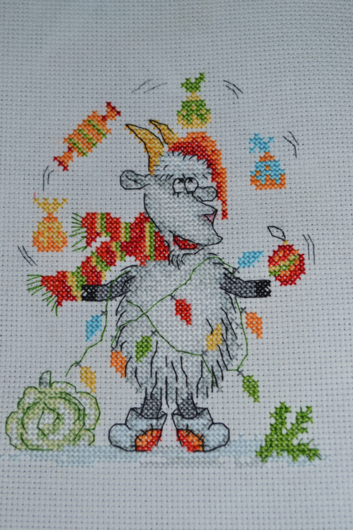 Вышивка крестомПодготовка к НГ идет полным ходом.... Очень понравился дизайн от Машеньки с символом 2015 года козочками вот первая на подходе еще две