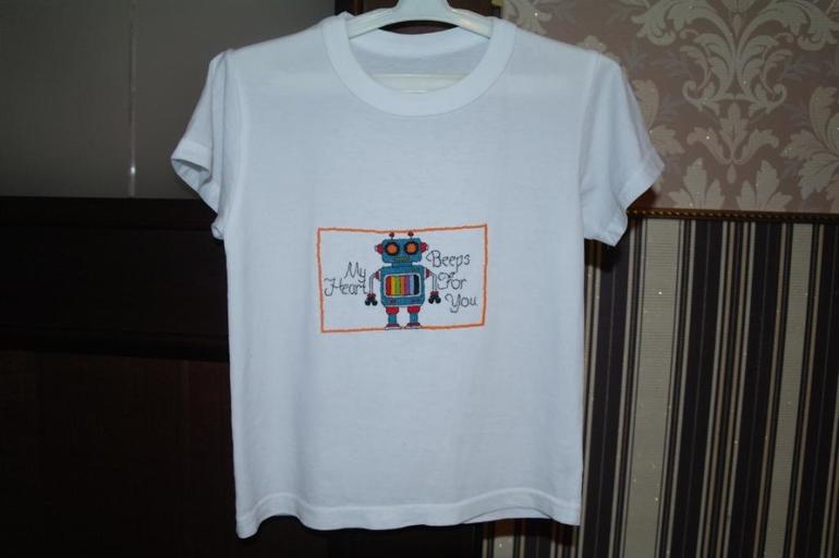 Вышивка крестомкоторую сын в садике заляпал гуашью. Подумав, что хуже уже не будет, вооружилась водорастворимой канвой и вуаля)