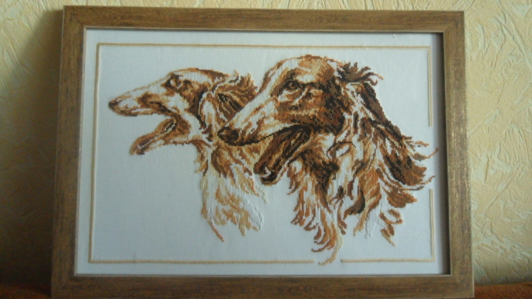 Вышивка крестомВот такая картина вышилась в подарок любимой сестре, которая очень любит собак! Надеюсь понравится!