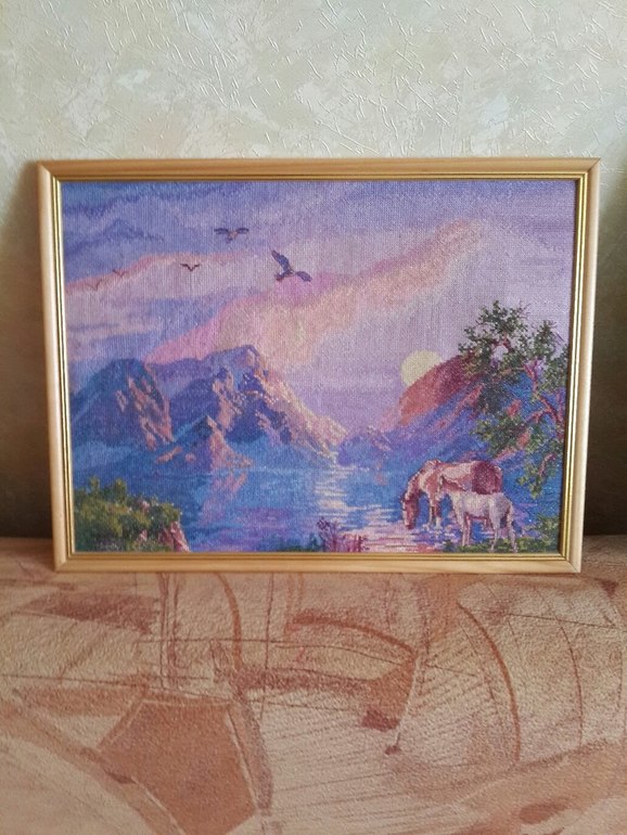 2. Следующий набор вышивался папе в подарок тк он любитель карелии. Набор стоял тыс две дороговато, вышивался долго и душа к нему не лежала уж очень много цветов было и одинарые клеточки замучали