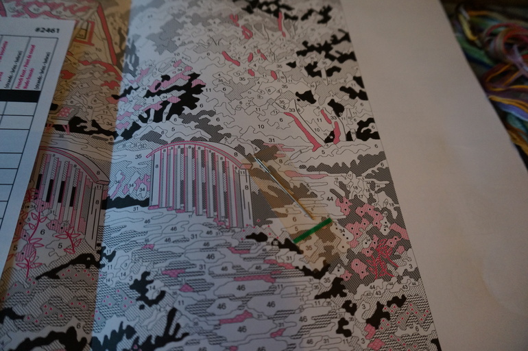 Запасайся иголочками))) Когда я вышивала в 6 нитей (на 18 канве) у меня их штук 15 полегло "в бою"))))
