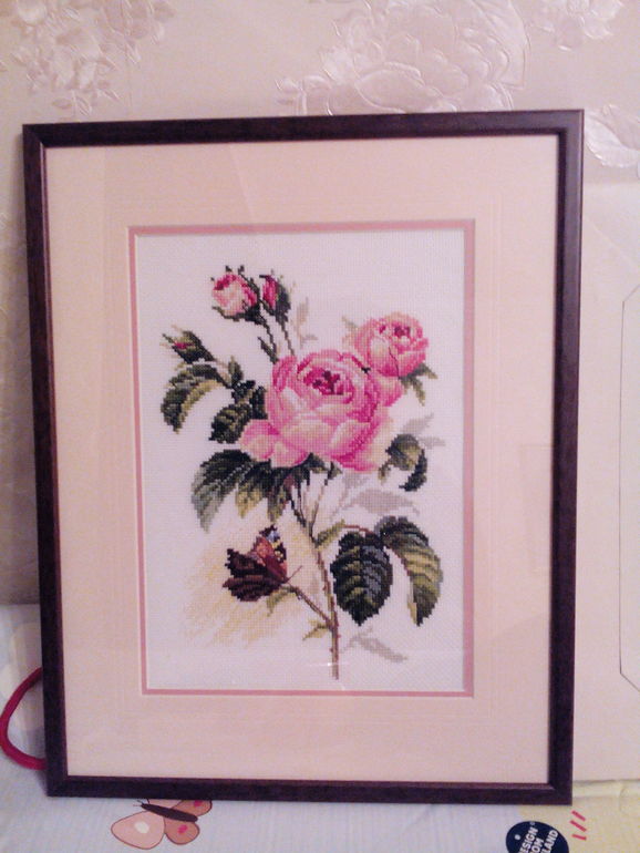 Вышивка крестомВышилась в подарок подруге вот такая розочка. Ей очень понравилось. Сама она не вышивает, но давно хотела себе повесить вышитую картинку)