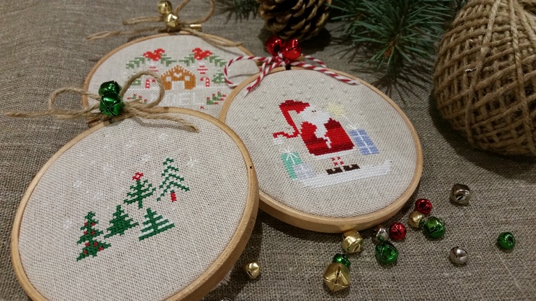 Вышивка крестомВсем привет! Новый год все ближе, но я успела закончить новогодние миниатюрки, часть из которых вместе с остальными подарками отправились в путешествие в Волгоград, к моим родным))