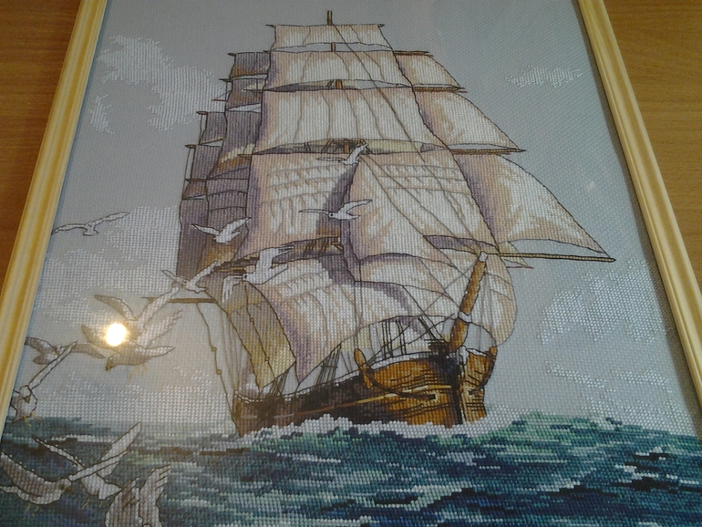 Кораблик чудесный получился...и море как живое..))Интересно...муж не подсматривал сам процесс создания..))?