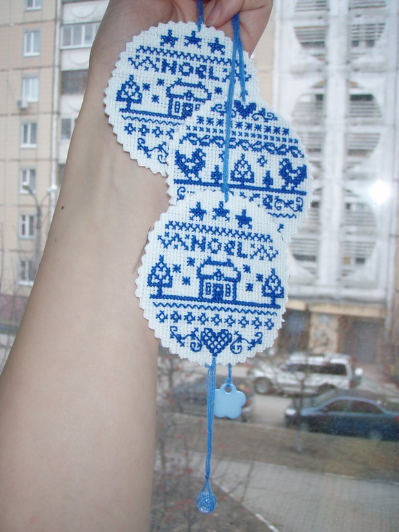 Я в этом году до них дорвалась) "Ёлочку с иголочки" монохромную сделала — тоже в голубых тонах — и их.