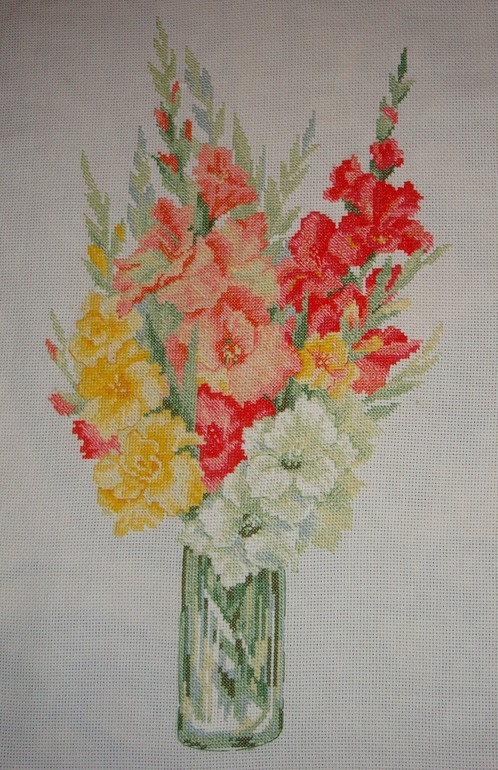 Далее работа в подарок маме. Гладиолусы от Риолис. Они помогали мне в борьбе с послеродовой депрессией