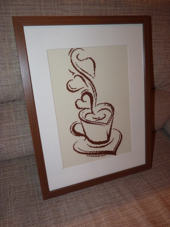 Эту кофейную чашечку я вышила ко дню рождения моей бабушки- любительницы кофе)