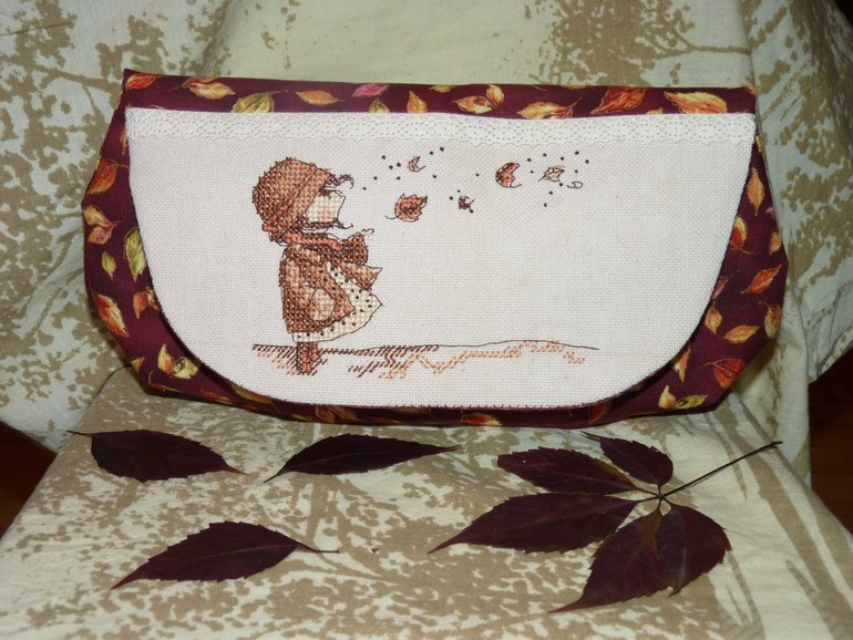Для конкурса в нашем сообществе на осеннюю тематику получилась вот такая чудесная косметичка, которая очень понравилась маме и теперь обитает у нее